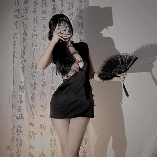 [火辣旗袍]情趣內衣性感鏤空旗袍睡衣開叉角色扮演激情黑色